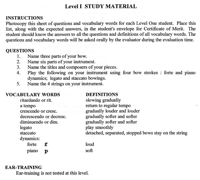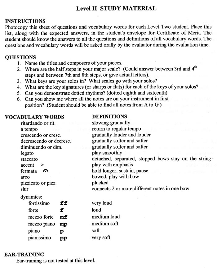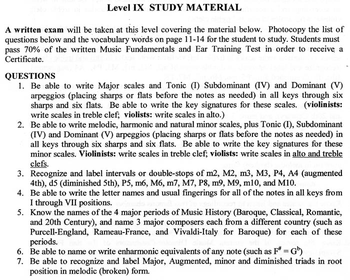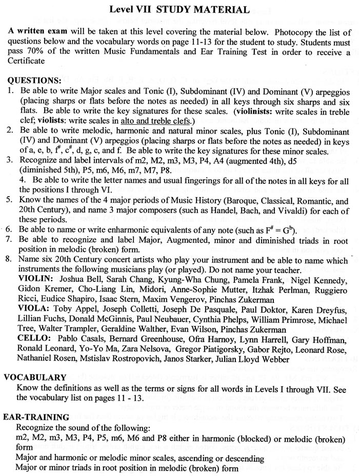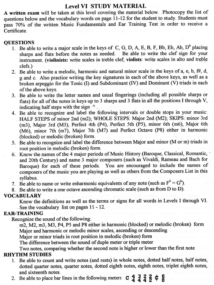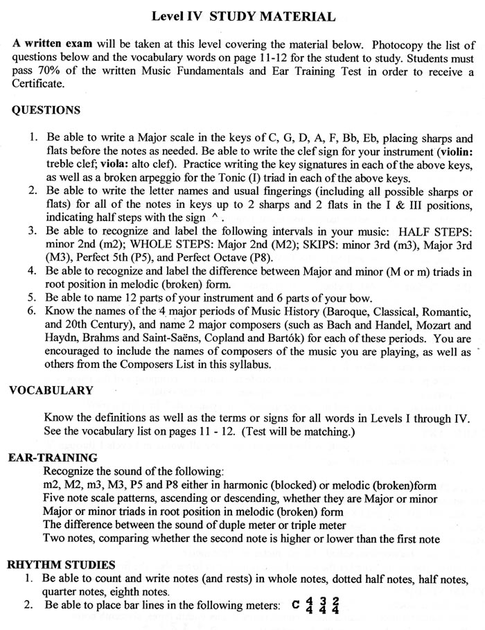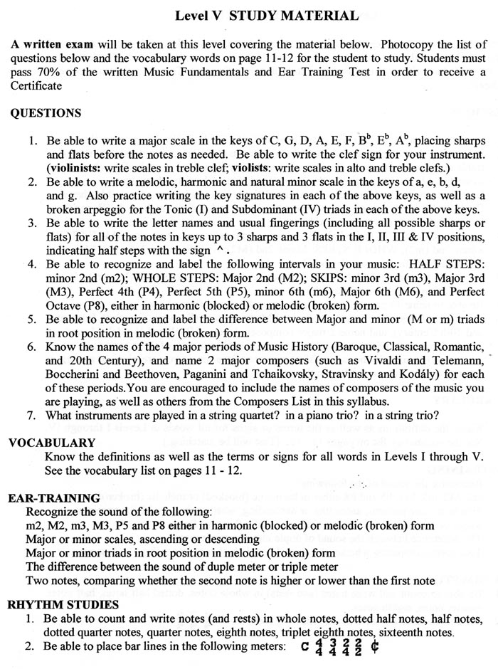 CM String Fundamentals of Music Exam.
