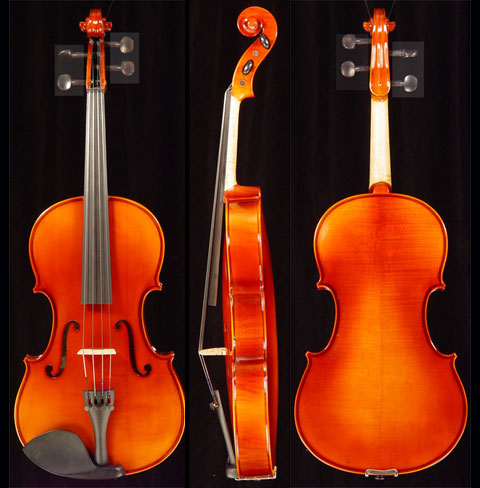 The handsome Satori Etude is a viola to make any young musician proud. This high quality instrument will encourage students to excel, so it's not just for the rental program! Patterned after the famous Guarneri school of violin making, the Etude projects beautifully and is easy to play for even the youngest musicians. The Satori Etude Violin features a light weight and highly resonant body hand carved from high quality straight grained spruce and lightly flamed maple. Careful attention to the thickness of the wood face and back produces a full, rich tone associated with instruments costing much more. There are three Satori Etude models to choose from featuring a selection of fittings and cases. A AB 100 rosewood bow is included. stronger plywood shell shaped case and beautiful finish. Responsive and open sound. Like others it will improve with use. Size available 12" - 16"1/2.