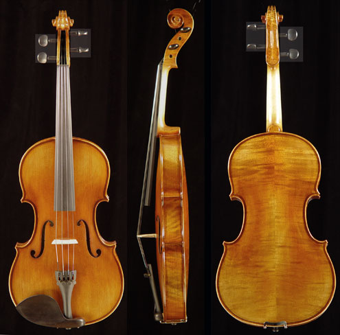 More attractive figured wood is used in this violin, and it is a good choice for the player looking for an instrument with more sound output and expressiveness. it has ebony fittings and fine appearance (fine antique style), with lightweight case and wood horsehair bow. Size available 15" - 16"1/2.